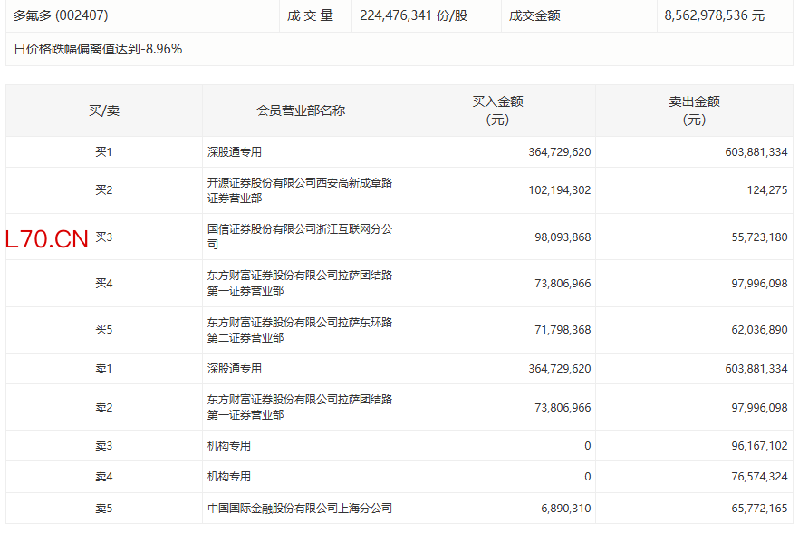 多氟多今日跌9.99% 2家机构专用席位净卖出1.73亿元多氟多今日跌9.99% 2家机构专用席位净卖出1.73亿元