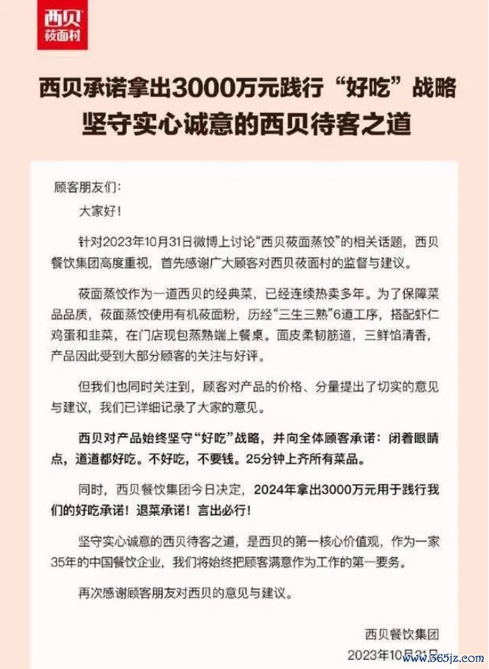 一千张嘴有一千个不同的味道。西贝强调好吃与拿出多少钱保证好吃,实质上意义不大,除非这3000万真够真金白银让消费者明白与理解你家食材与食物是真的好,比如对消费者有部分菜品的试吃支持等?