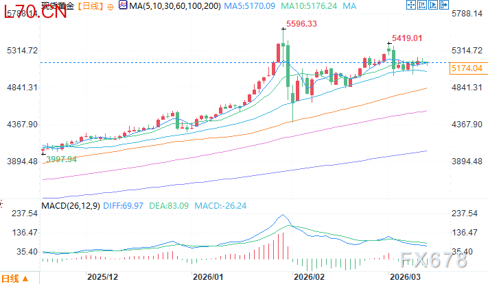 现货黄金日线图 来源:易汇通北京时间3月12日10:28 现货黄金 报 5168.04 美元/盎司