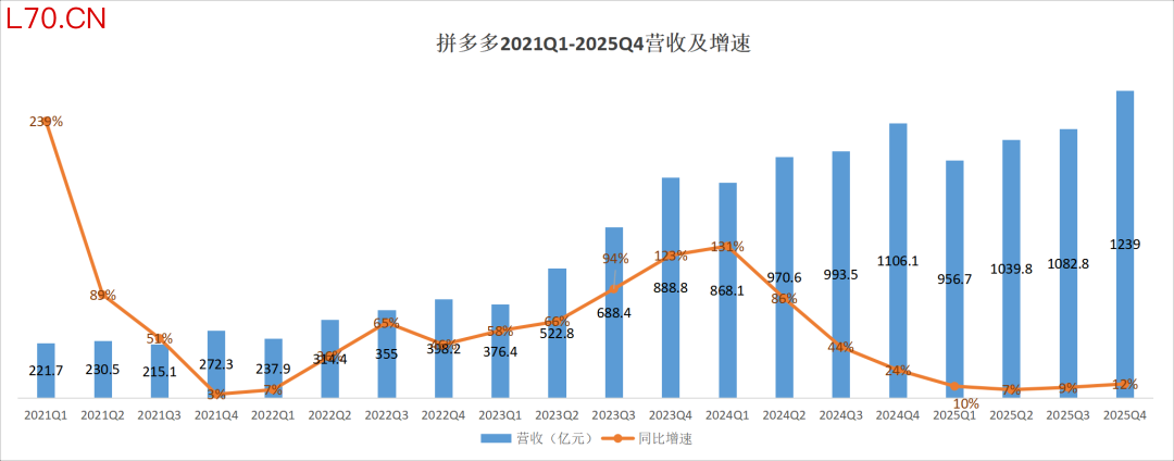3月25日美股盘前,拼多多发布了2025年Q4及全年的业绩公告。Q4的营收1239亿元,同比增长12%;净利润245亿元,同比下滑11%。