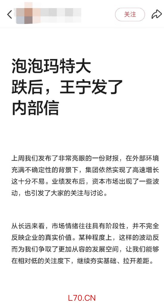 该内部信提到:“从长远来看,市场情绪往往具有阶段性,并不完全反映企业的真实价值。某种程度上,这样的波动反而为我们争取了更加从容的发展空间,让我们能够在相对低了的关注度下,继续夯实基础、拉开差距。”